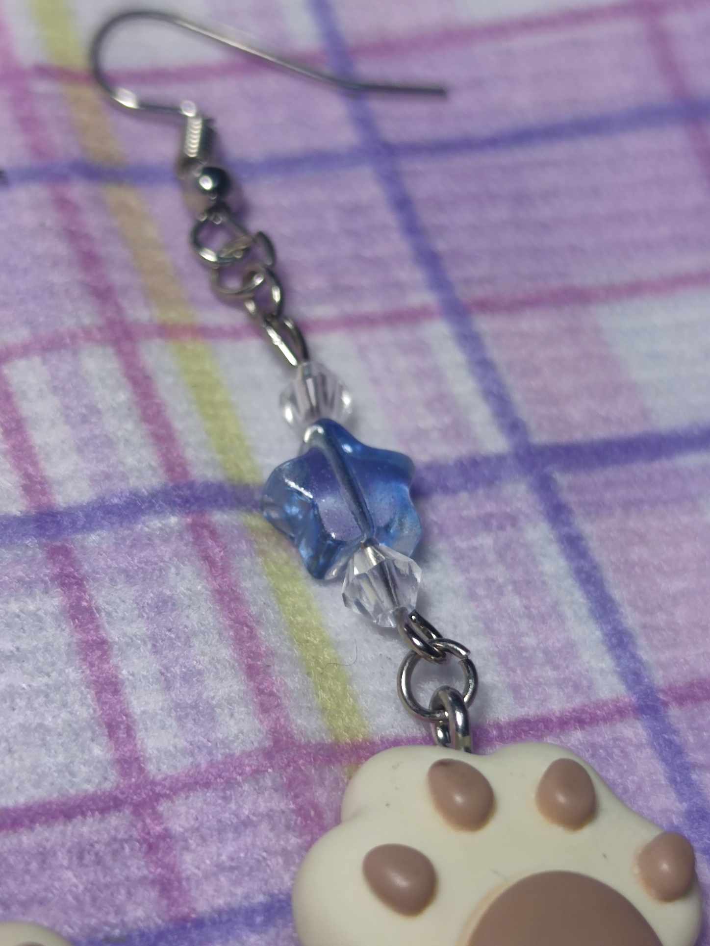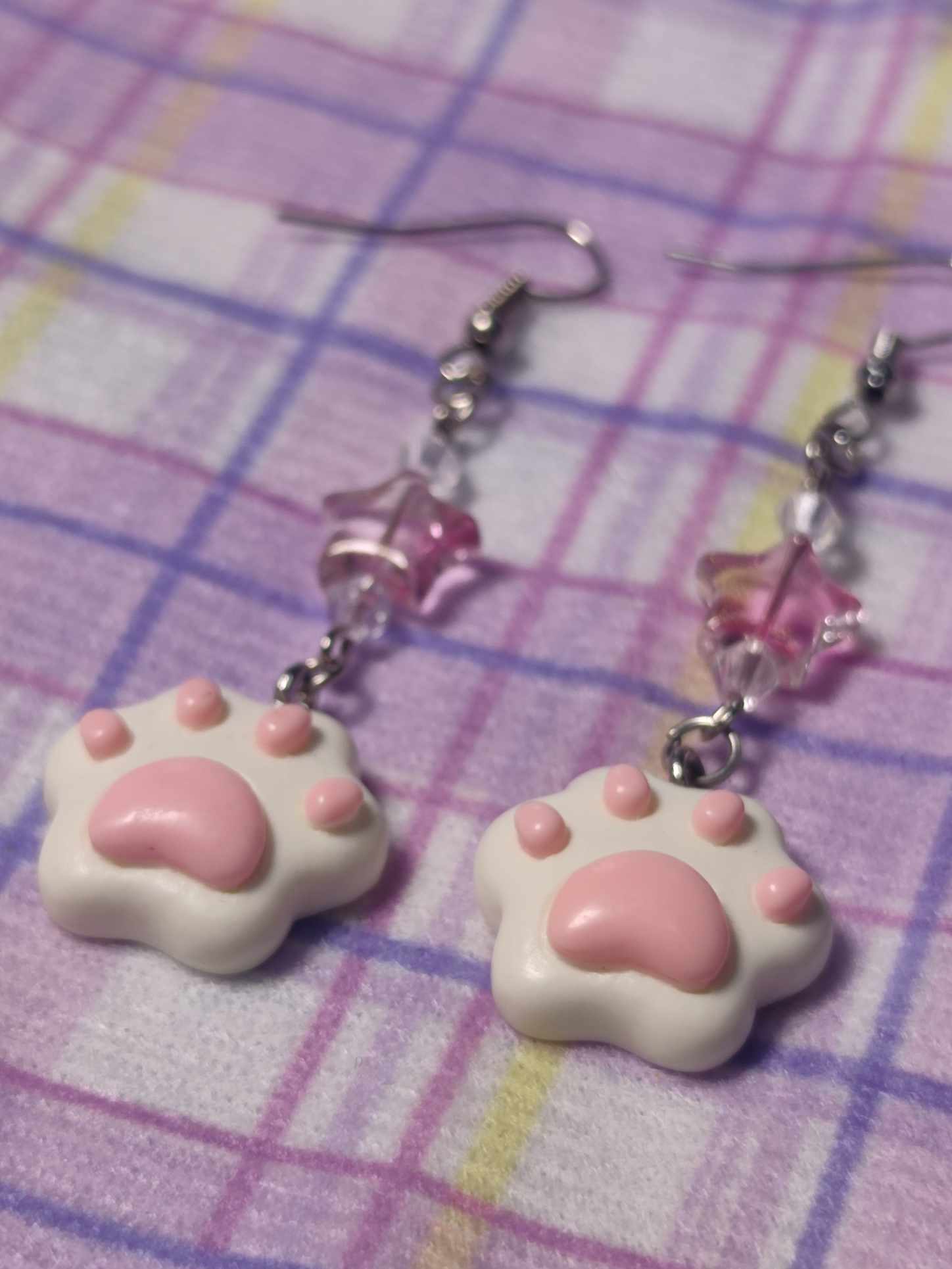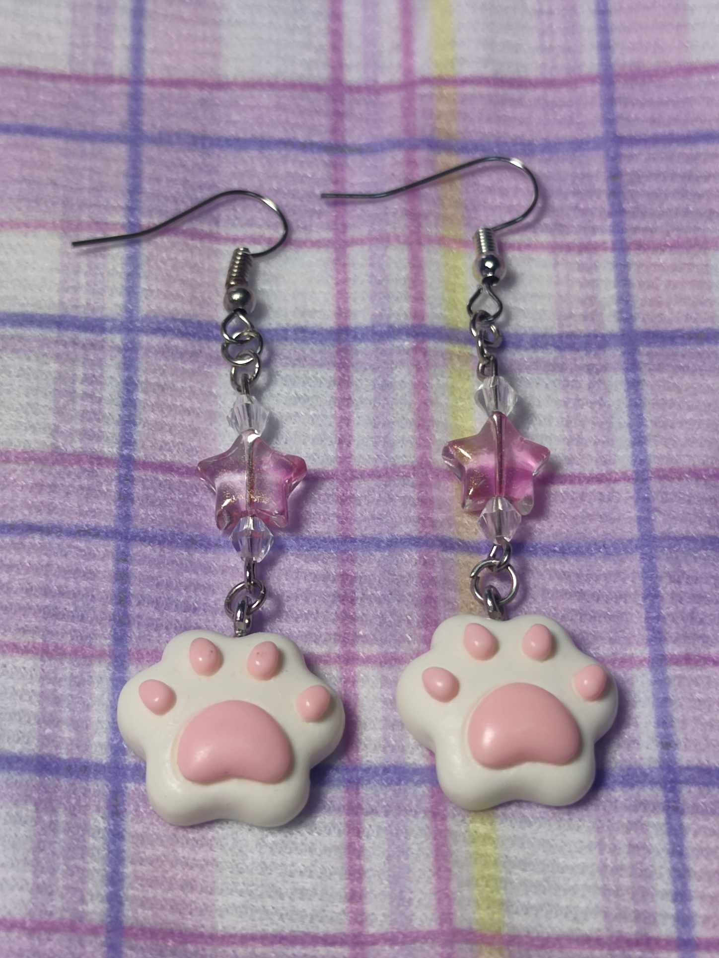 These "Purrfect Pawdrops" earrings are a delightful accessory for anyone who adores cats and all things cute! Featuring soft, pastel pink cat paws crafted with intricate detail, these earrings are both playful and stylish. Each paw charm is paired with a shimmering pink star and a clear crystal bead above it, adding an extra touch of sparkle and whimsy. The lightweight design makes them comfortable to wear all day, while the high-quality hooks ensure they stay securely in place. Perfect for cat lovers or anyone who loves a touch of kawaii charm in their jewelry collection, these earrings are sure to bring a smile to your face every time you wear them!