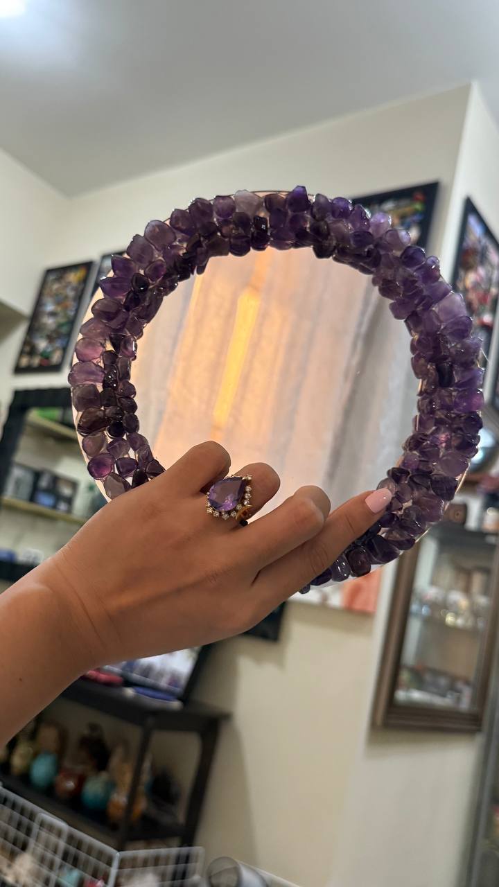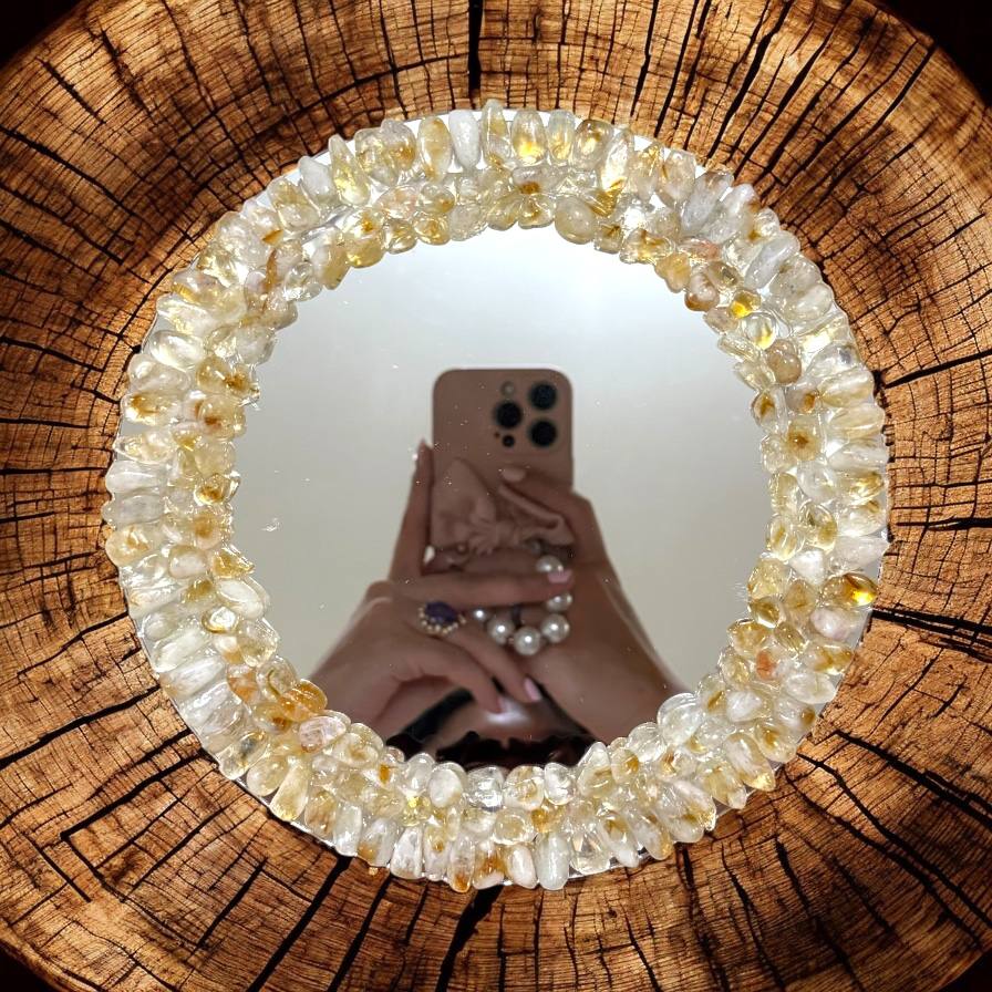Elevate your daily ritual with our Crystal Enchantment Mirror, a luxurious 7.8" mirror encircled by the divine energy of handpicked crystals. Available in four spellbinding variants, Citrine, Amethyst, Rose Quartz, and Lapis Lazuli, each mirror is crafted to amplify your intention, self-reflection, and inner magick.