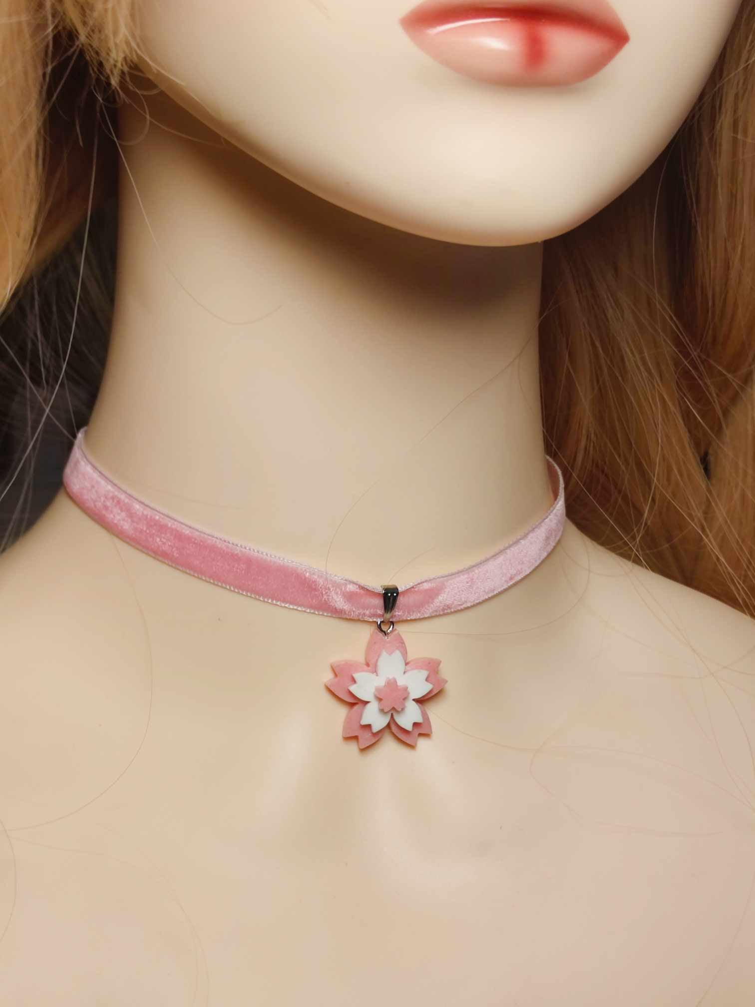 Embrace the delicate beauty of spring with this exquisite cherry blossom pendant on a choker. The pendant, finely hand crafted to capture the soft elegance of cherry blossoms in full bloom, features intricate petal detailing that shimmers with a subtle iridescence. Suspended from a sleek, adjustable choker, this piece sits gracefully at the neckline, making it a perfect blend of modern sophistication and timeless charm. Whether you're dressing up for a special occasion or adding a touch of elegance to your everyday look, this cherry blossom pendant on a choker is a graceful nod to nature’s fleeting beauty.