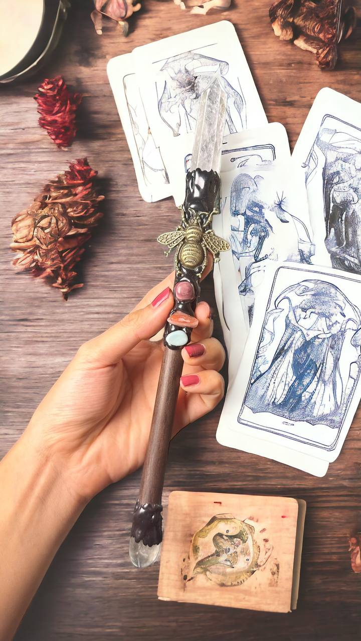 Handcrafted by seasoned witches and imbued with potent energies, every Lumina Prism wand undergoes ritualization and consecration, ensuring its alignment with the forces of the cosmos. With dimensions ranging between 10 to 11.5 inches, each wand is a bespoke creation, imbued with its own individuality and charm.