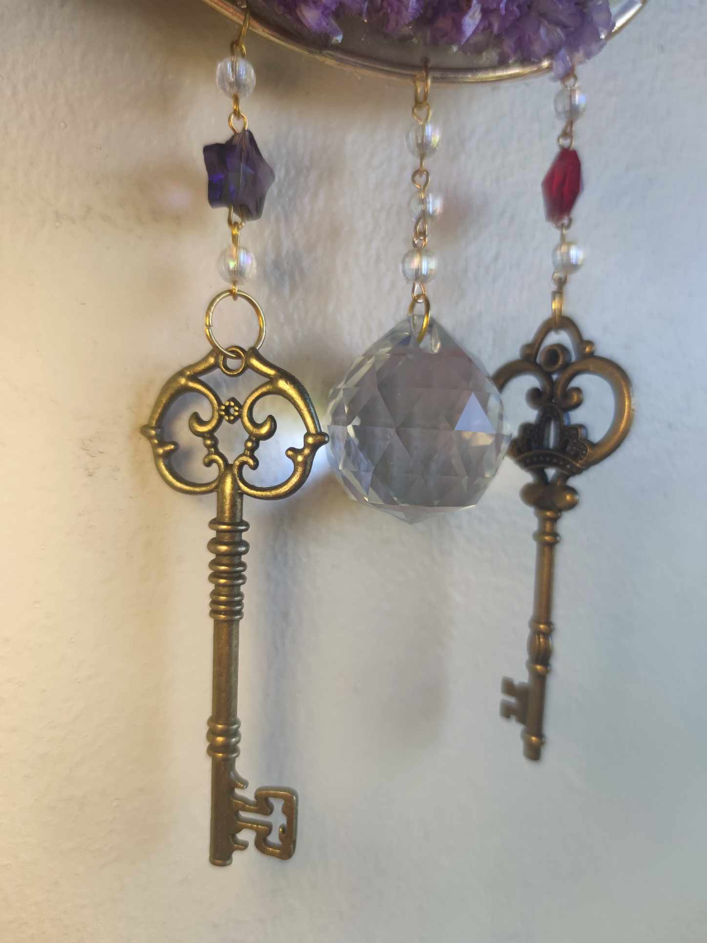 These solar ornaments are crafted with crystals as well as flora that you can display in your home as an art piece or on your alter as part of your devotion to your guides