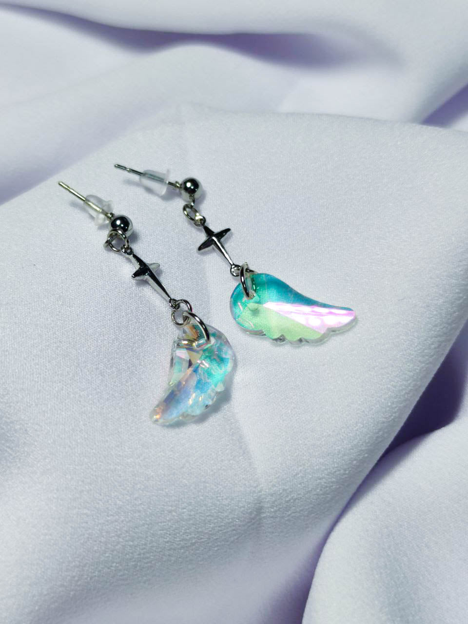 These elegant handmade earrings are designed to inspire divine connection and healing energy. Featuring shimmering Swarovski crystals shaped like delicate angel wings, they radiate a celestial beauty that captures the light with every movement. Suspended below, a finely crafted cross serves as a symbol of faith and protection, completing the heavenly design.