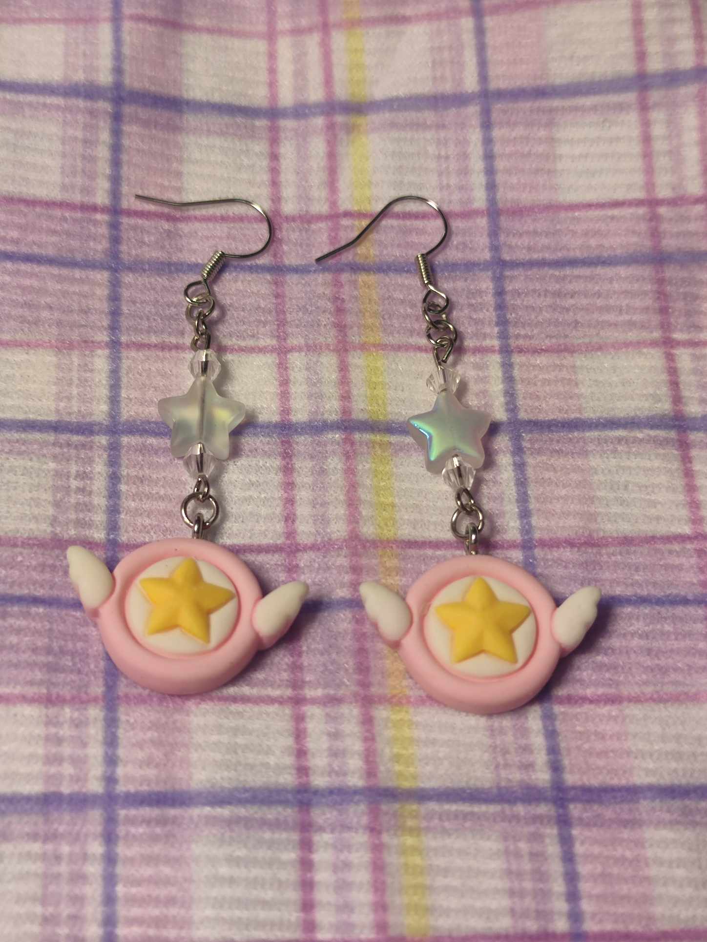 Step into a world of magic and wonder with these beautifully crafted earrings inspired by the beloved anime, Cardcaptor Sakura. Each pair features a charming blend of celestial and whimsical elements that capture the essence of Sakura's magical adventures.