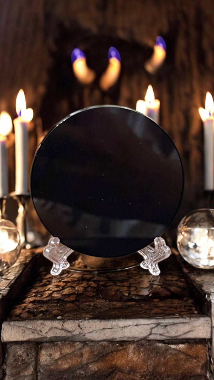 Black Obsidian, renowned for its protective and grounding qualities, enhances psychic abilities and fosters deep spiritual insight. Perfect for scrying, shadow work, meditation, and exploring hidden truths, this mirror serves as your guide into the realms of your subconscious, revealing clarity and divine messages.
