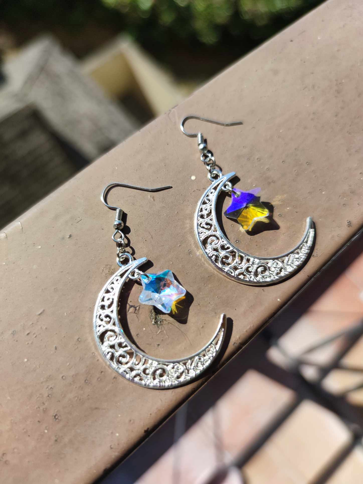 Moon and star earrings typically embody celestial elegance. Imagine delicate crescent moons dangling from your ears, each adorned with twinkling stars. They feature intricate details, such as tiny crystals or subtle engraving, enhancing their celestial allure. crafted from anti tarnish silver for a classic look or featuring modern twists with mixed metals or colorful gems, these earrings capture the enchantment of the night sky, adding a touch of magic to any ensemble. they often symbolize celestial themes like mystery, magic, and dreams.